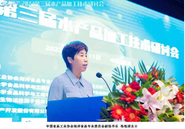 8月11日上午,由中國(guó)食品工業(yè)協(xié)會(huì)海洋食品專(zhuān)業(yè)委員會(huì)副秘書(shū)長(zhǎng)楊桂清女士和上海海洋大學(xué)施文正教授主持。
